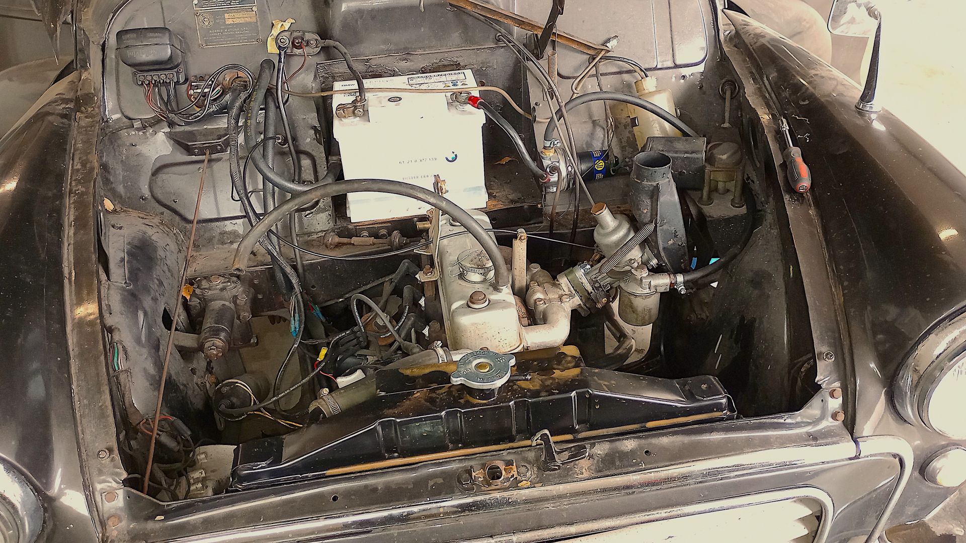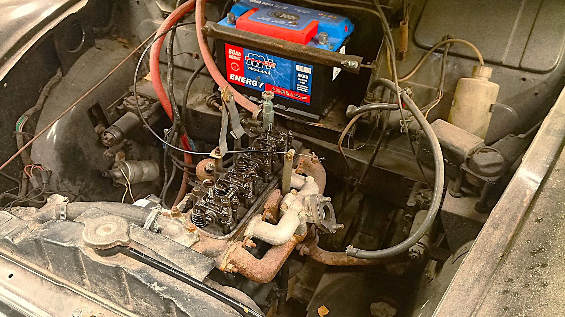 Morris Minor moottori kasattu, että pääsi testaamaan käyntiin lähtöä.