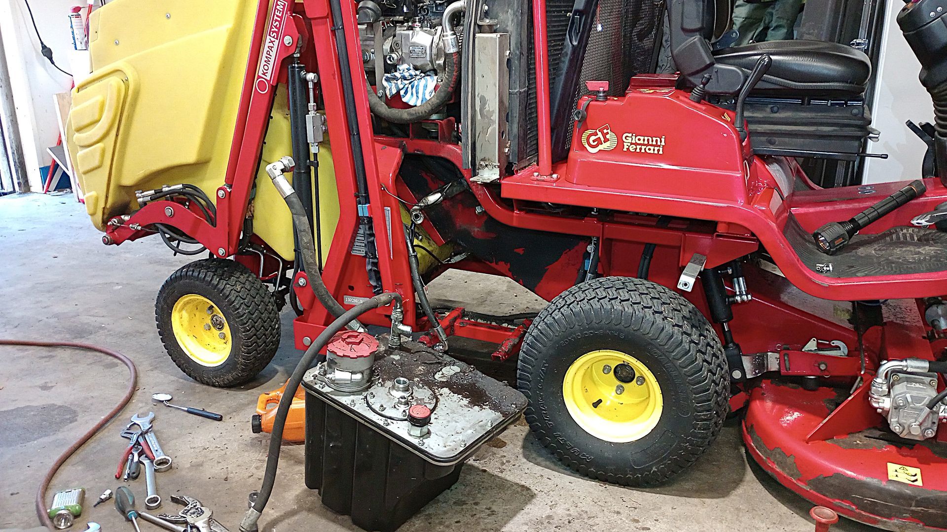 Stiga -ajoleikkurin hydrostaattivaihteiston korjaus.