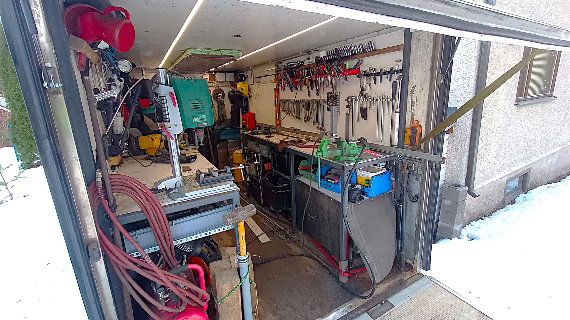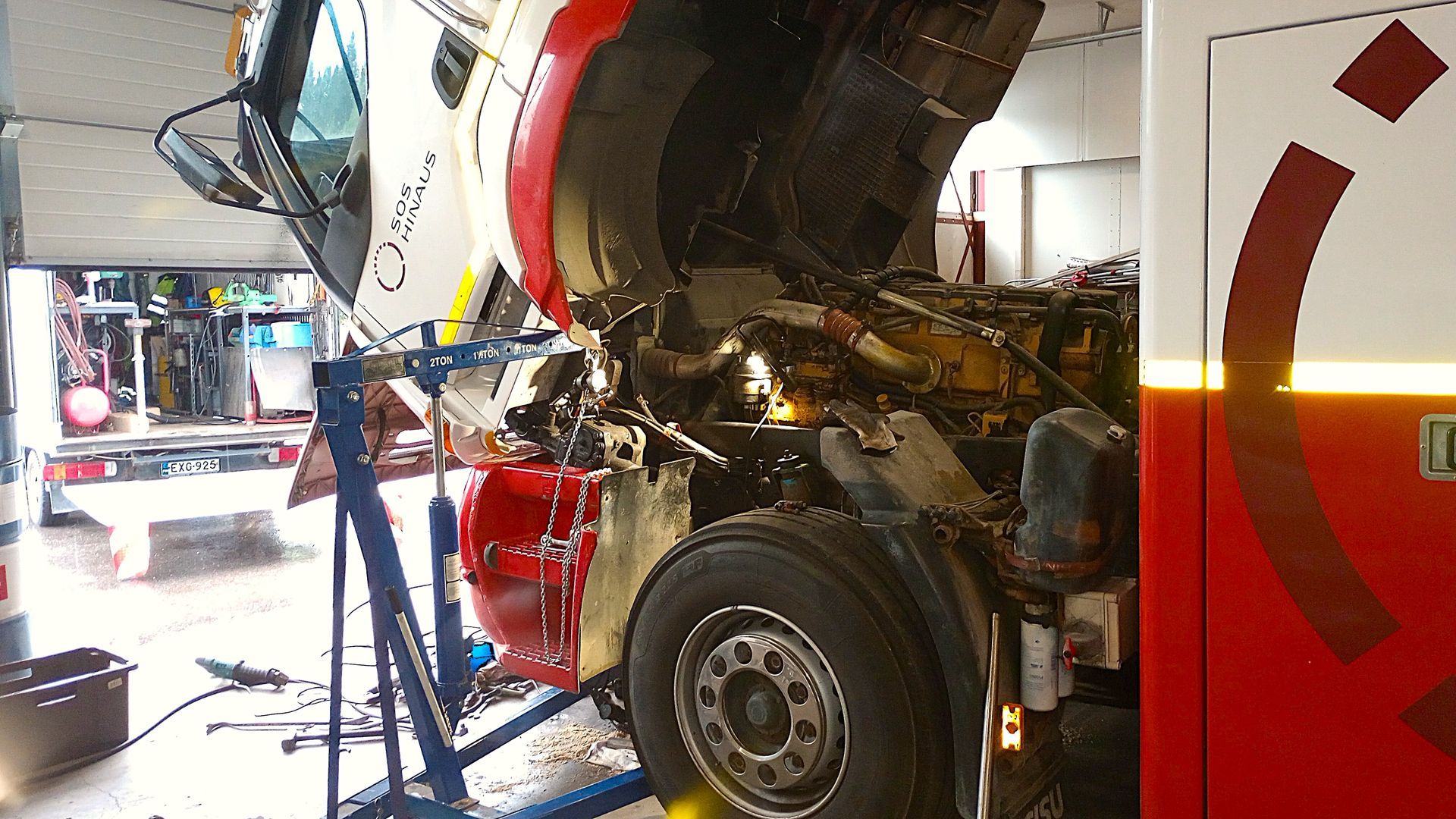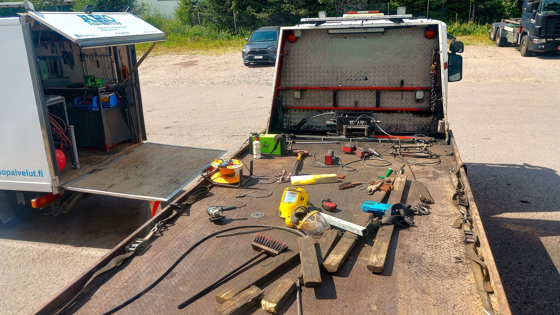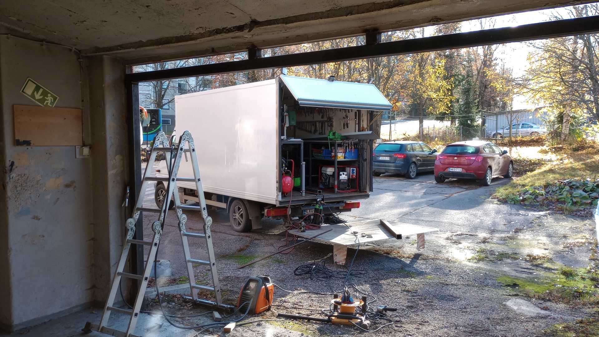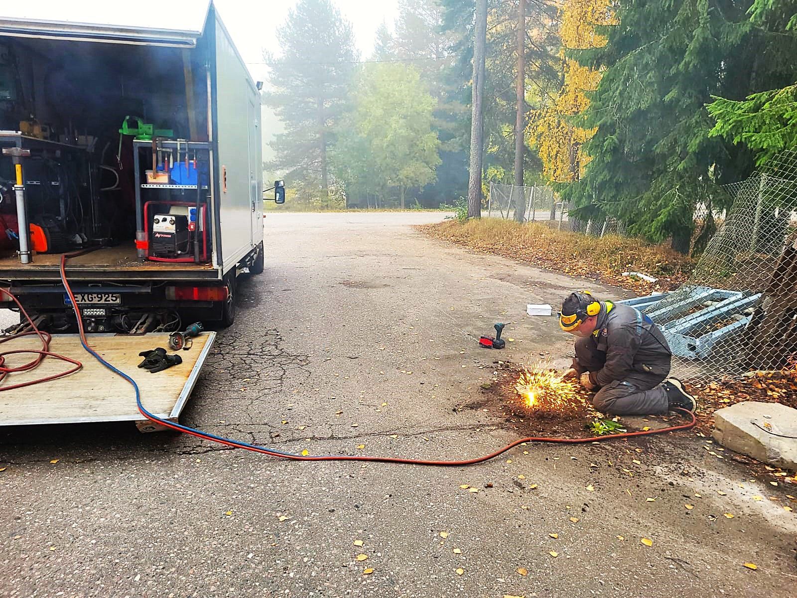 Autotallin metallikarmien muutostyö kenttäolosuhteissa.