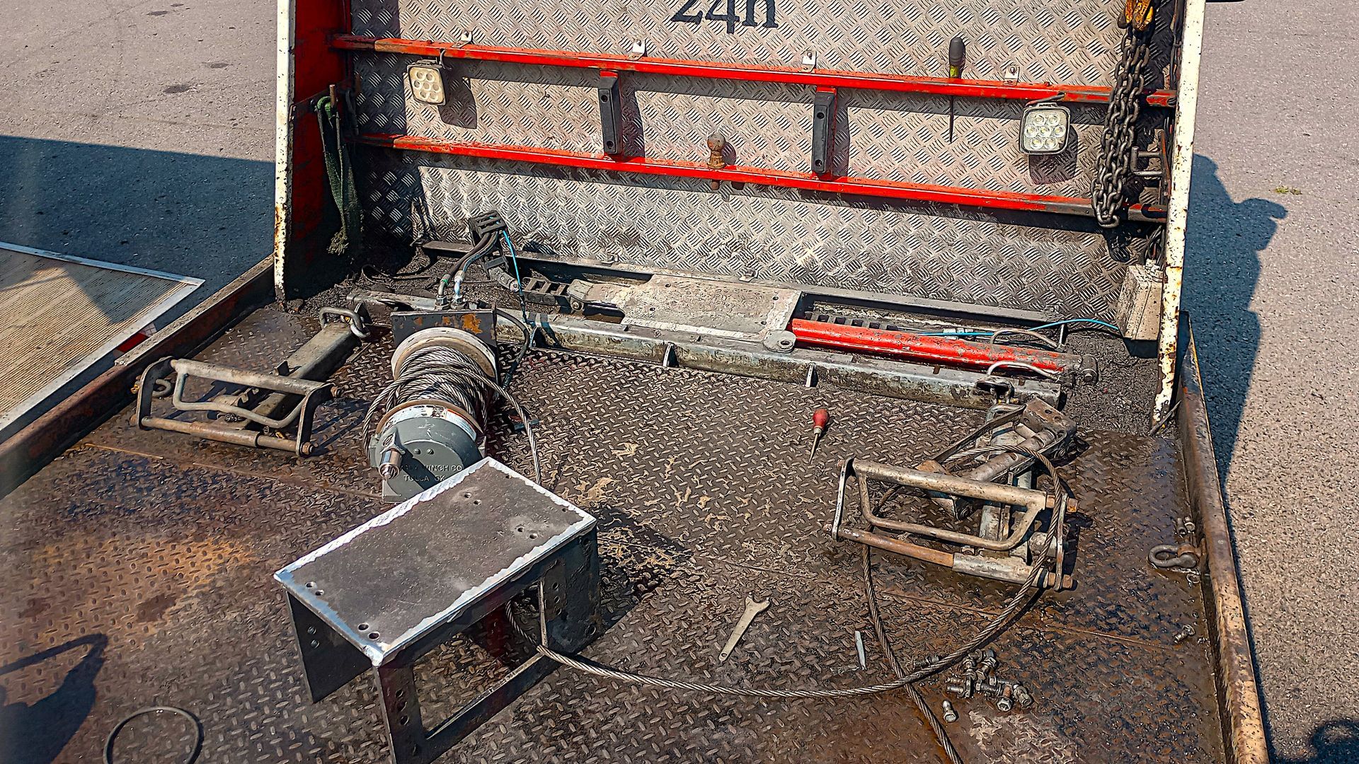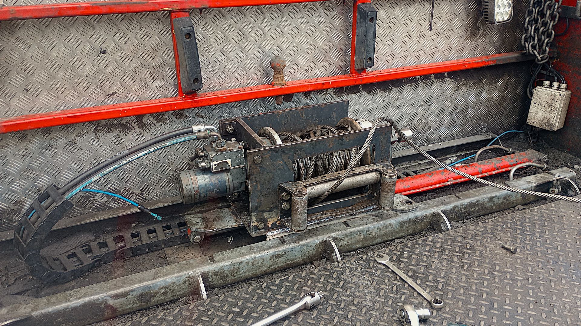 Hinausauton vinssin kiinnitysrungon korjaus.