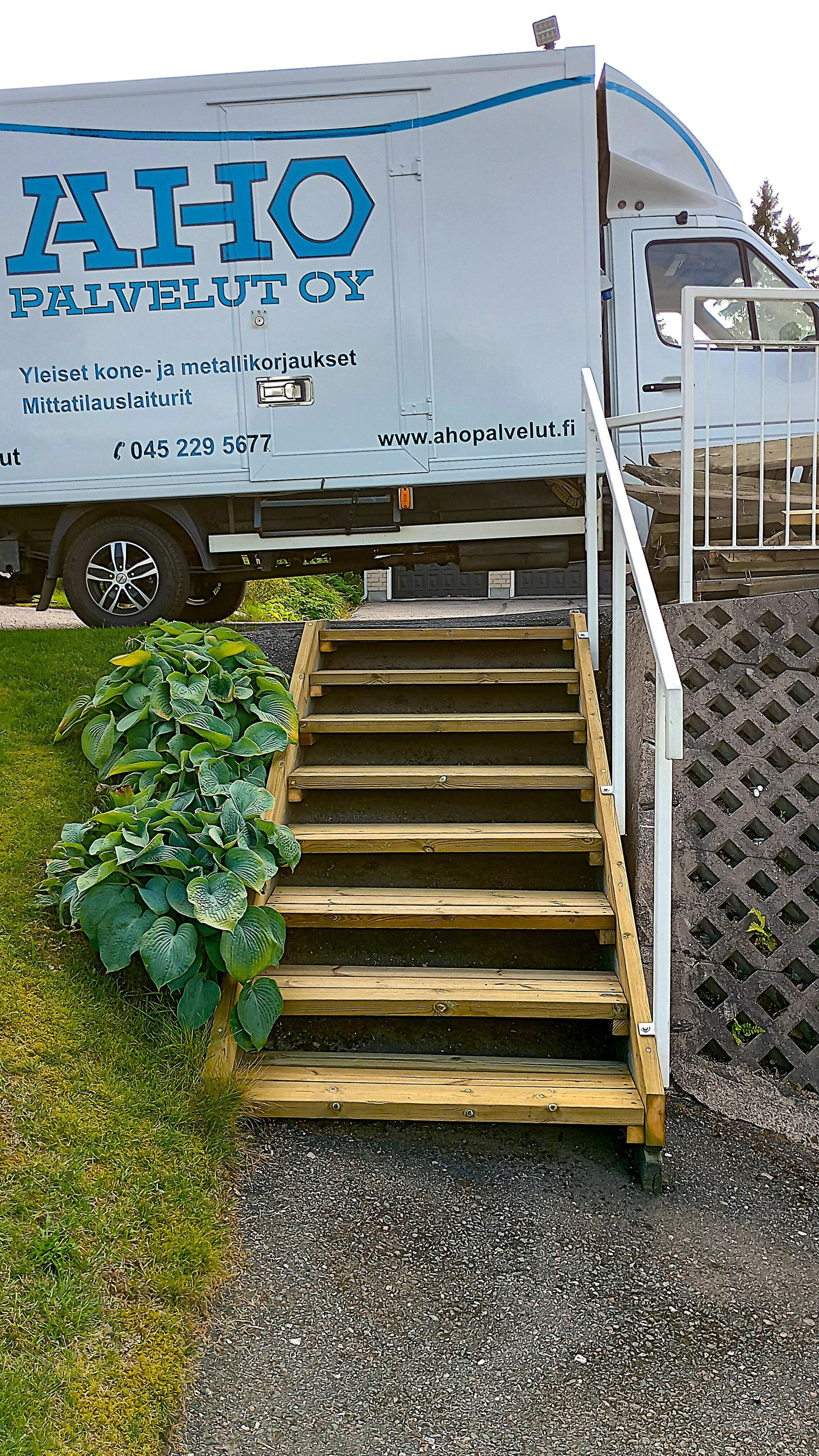 Valmistettu uudet puuportaat entisten huonokuntoisten tilalle.