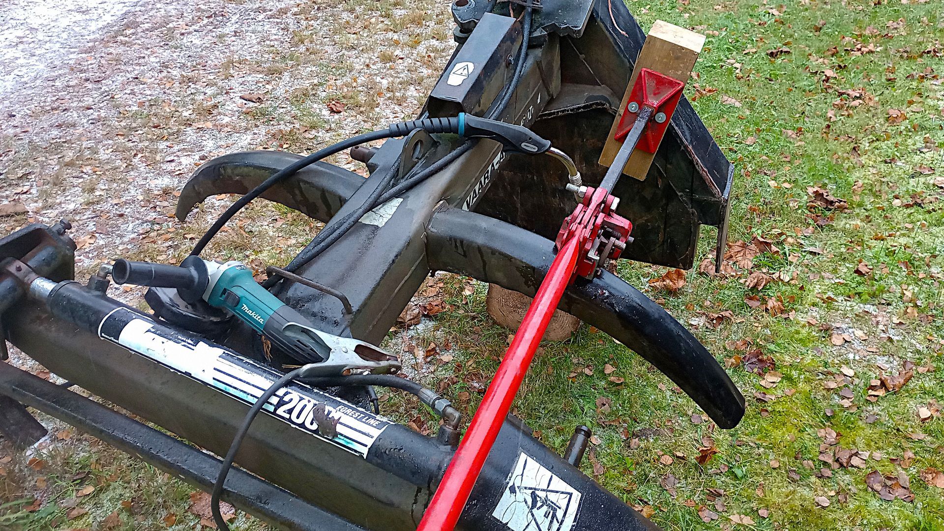 Traktorin juontokouran revenneen ja taipuneen sakaran korjaus kenttäolosuhteissa.