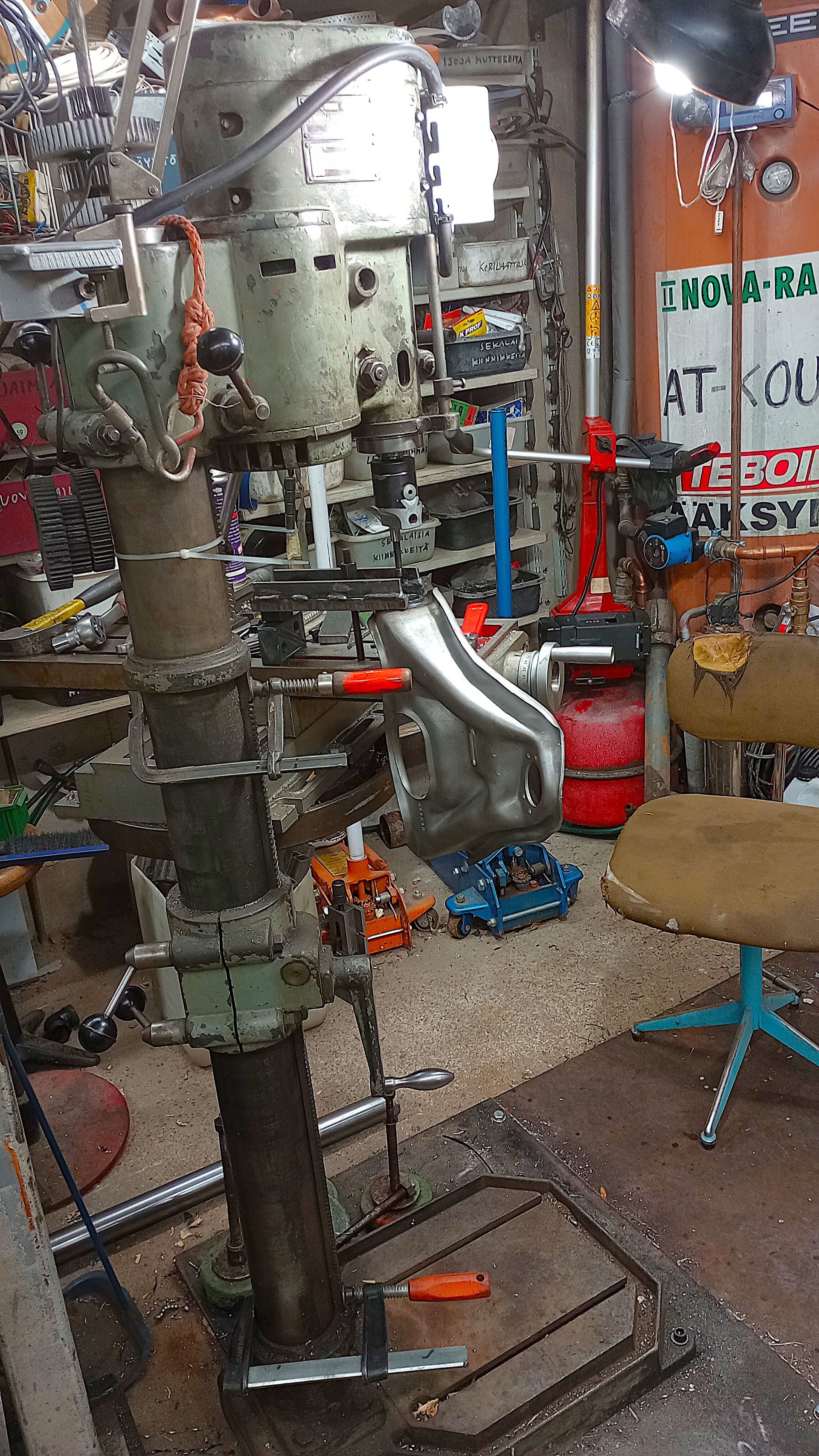Morris Minor kaasuvivun nivelpiste väljistynyt. Koneistettiin uusi liukuholkki ja akseli niin tuli hyvä.