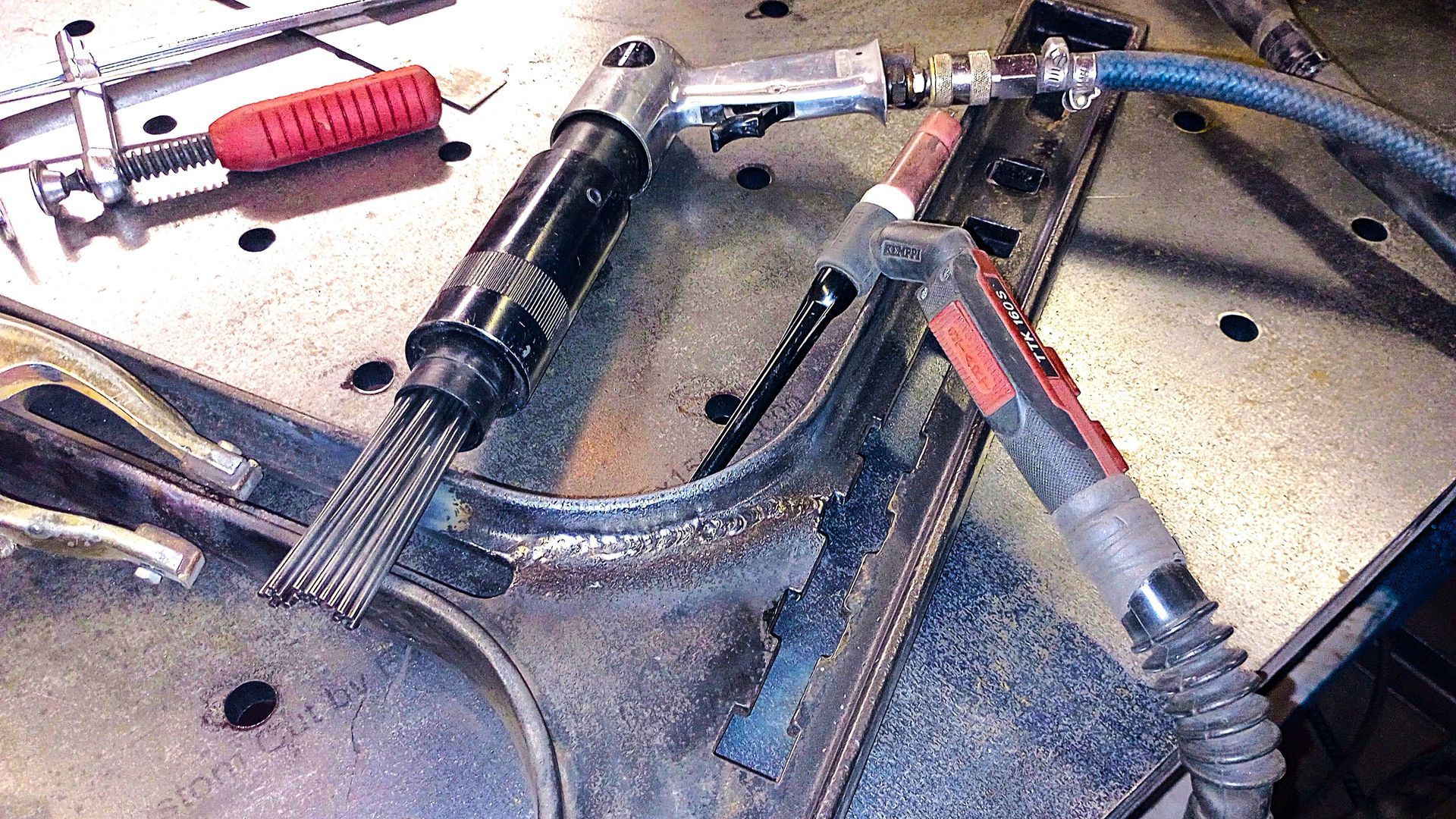 Valurautakorjauksia tehdään. Tässä noin satavuotias Singer-pöydänjalka joka oli haljennut suht pitkältä matkalta.