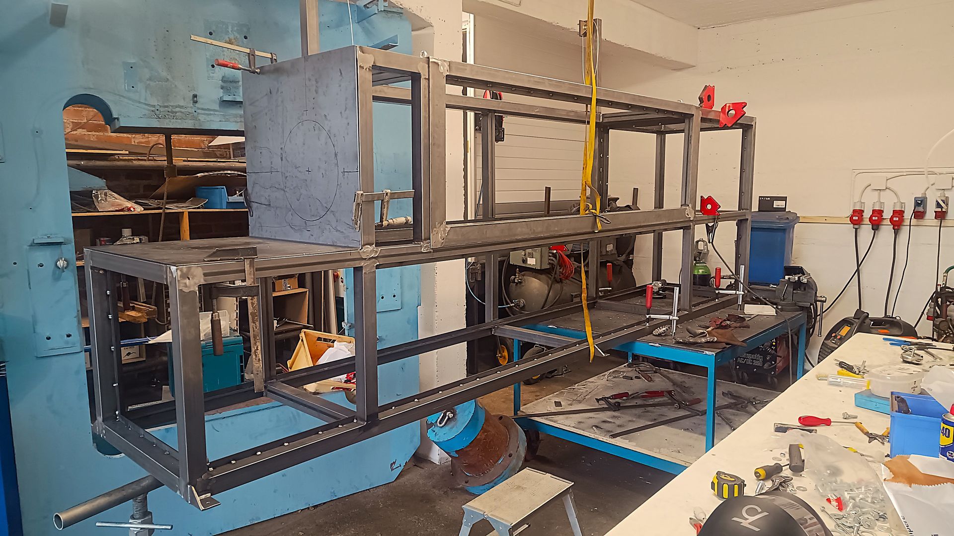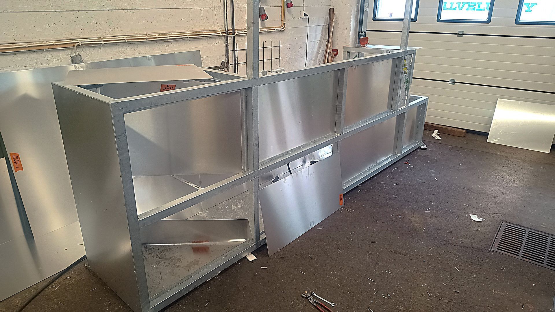 Erikoiskäyttöön suunniteltu uuni työn alla. Runkorakenne kuumasinkitty.