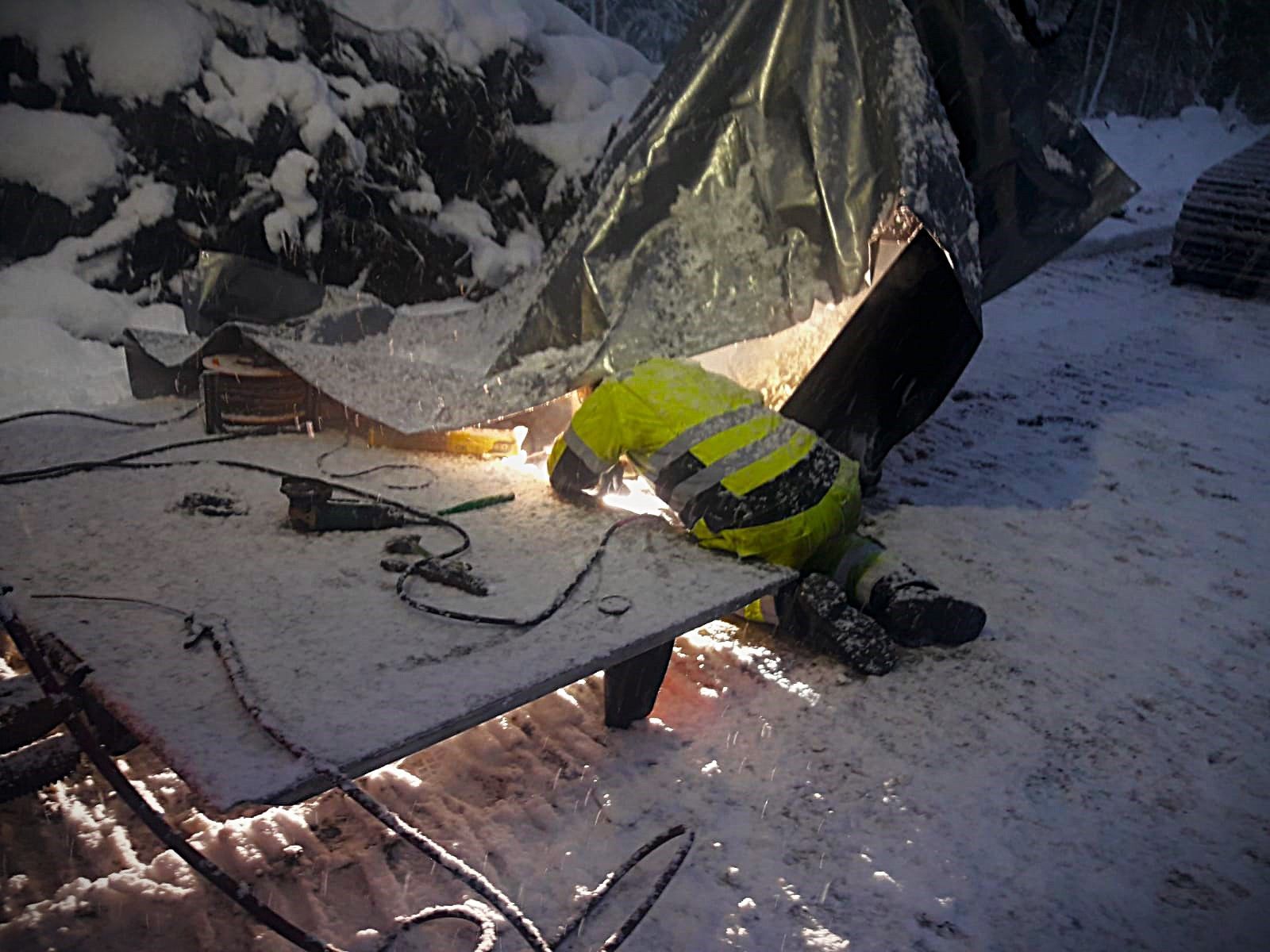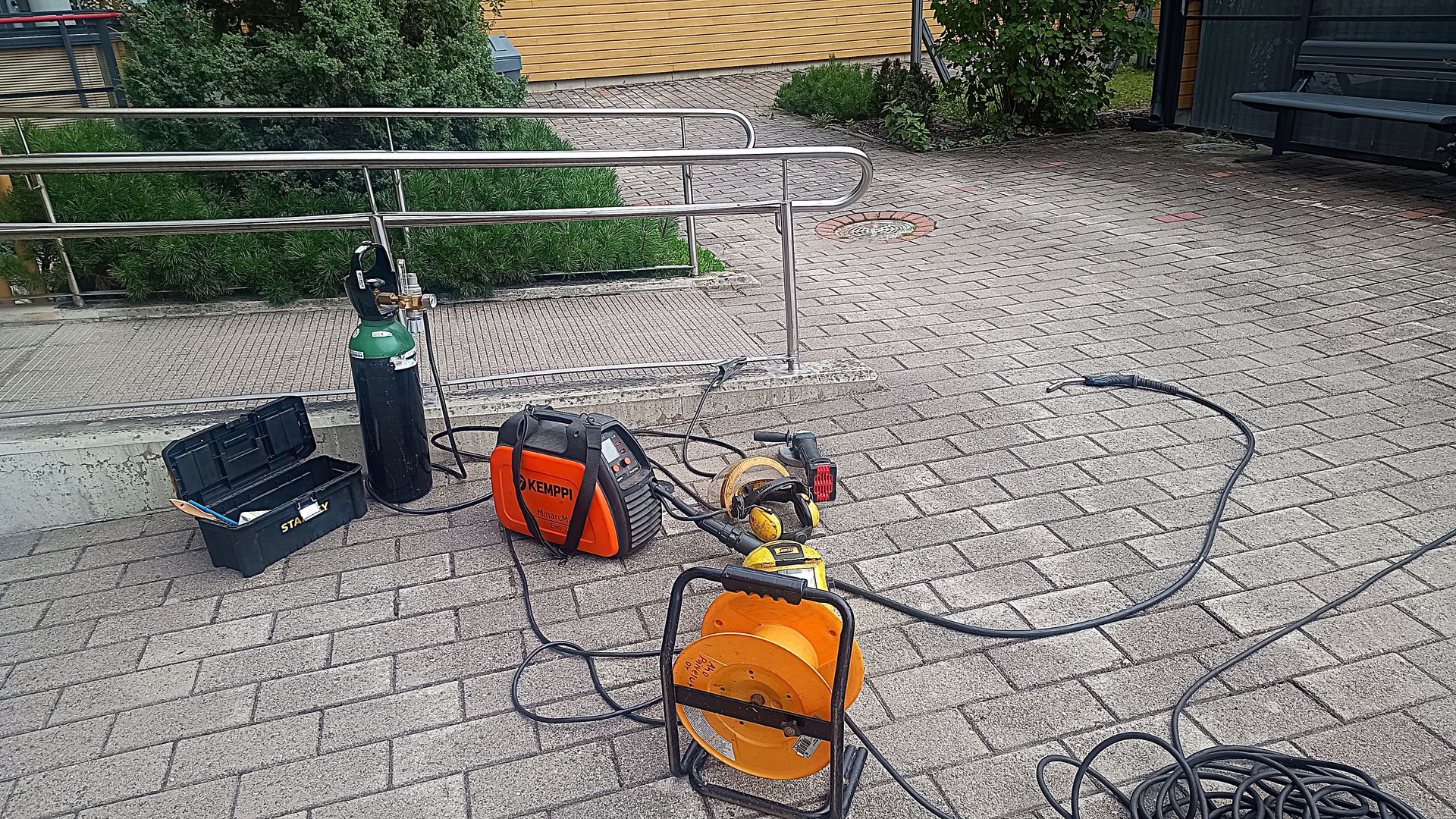 Alumiinisen liukuportin korjaushitsaus kenttäolosuhteissa.