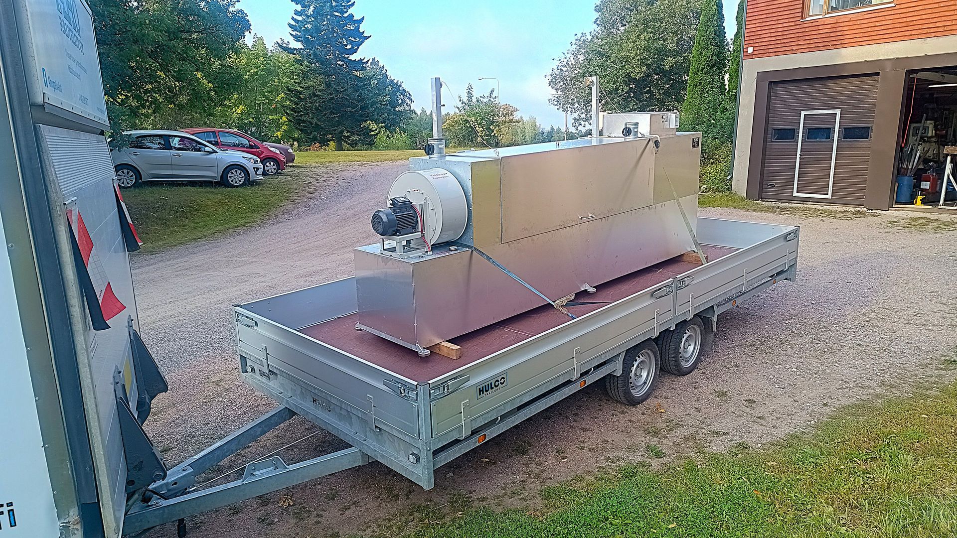 Erikoisvalmisteinen uuni lähdössä asennukseen.
