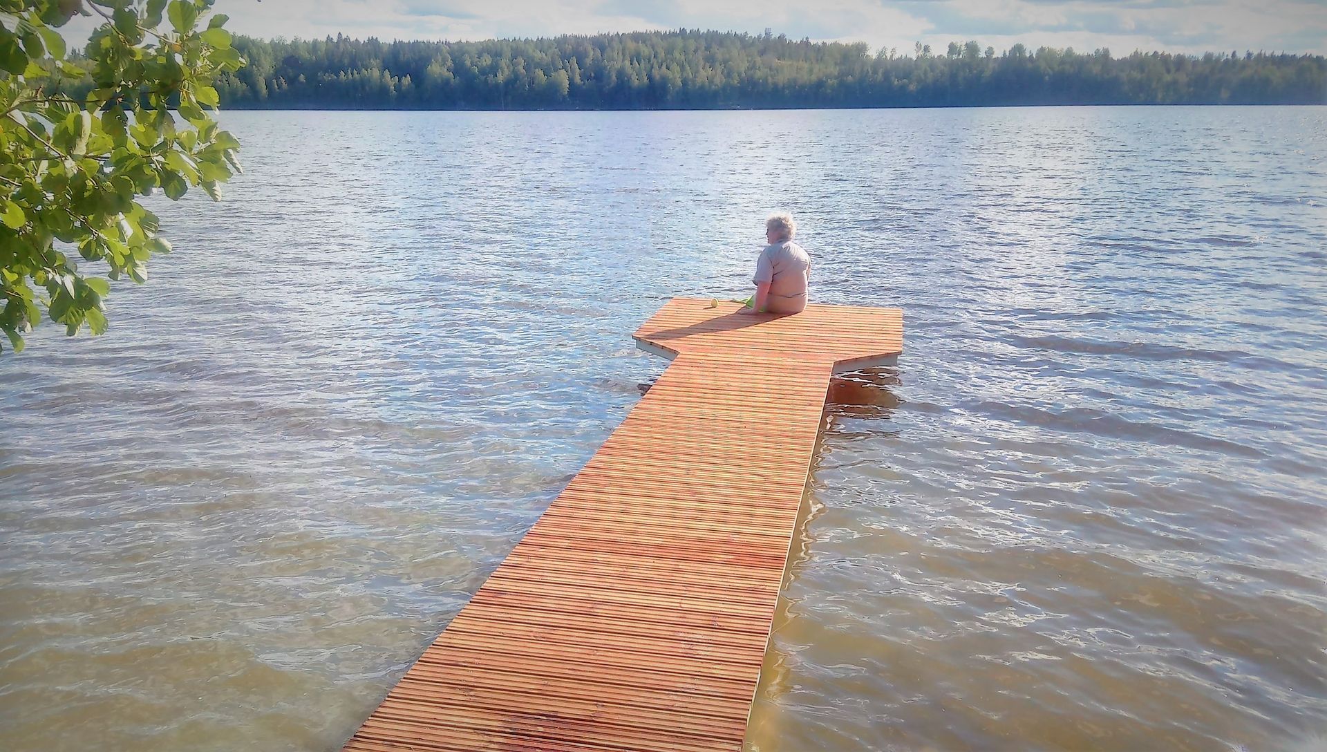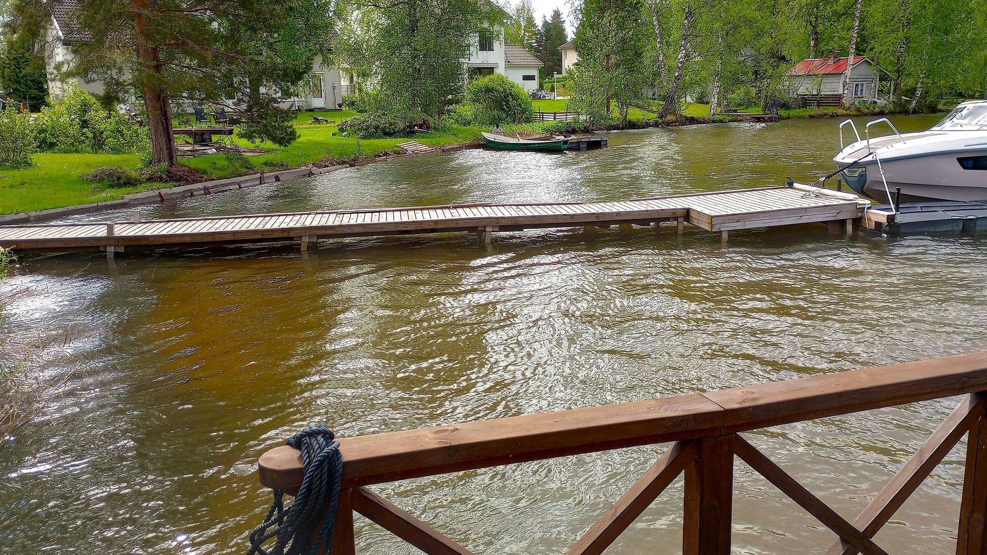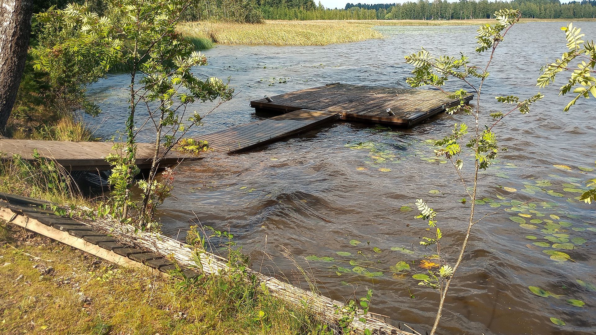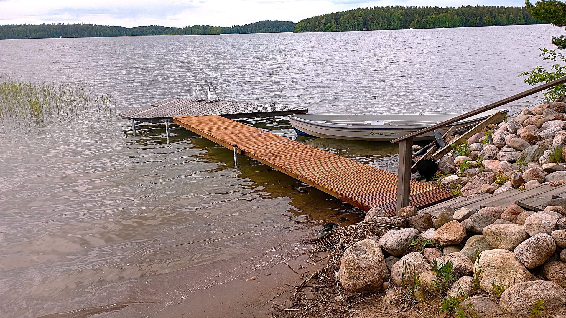 Valmis. Tässä kohteessa oli laituri jätetty ympärivuotisesti järveen ja heti ensimmäisenä keväänä meni rikki ja jäät työnsi rannalle. Haluttiin säästää suht ehjänä säilynyt ulkopää ja loppu rakennettiin uudestaan. Nyt tätäkään ei jätetä talveksi jäihin vaan helpolla siirretään talviteloille.