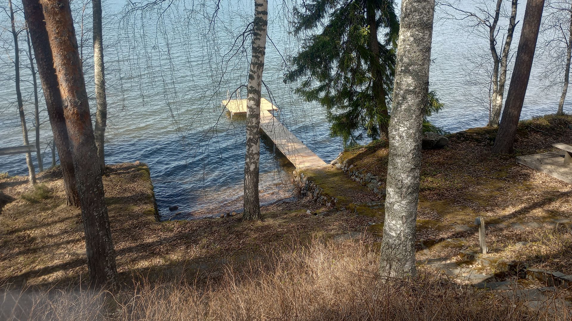 Tässä on vanha puurunkoinen ympärivuotinen laituri suurella järvellä. Kuten näkyy, vähän joka puolelta on vääntynyt kun jäät ovat aikojen saatossa murjoneet. Suht pienellä kuitenkin kun ei tätä pahemmin ole hajalla. Tällainen seuraus tulee kun laituri viettää vedessä ympäri vuoden.